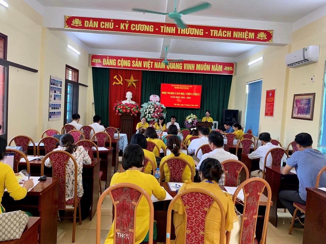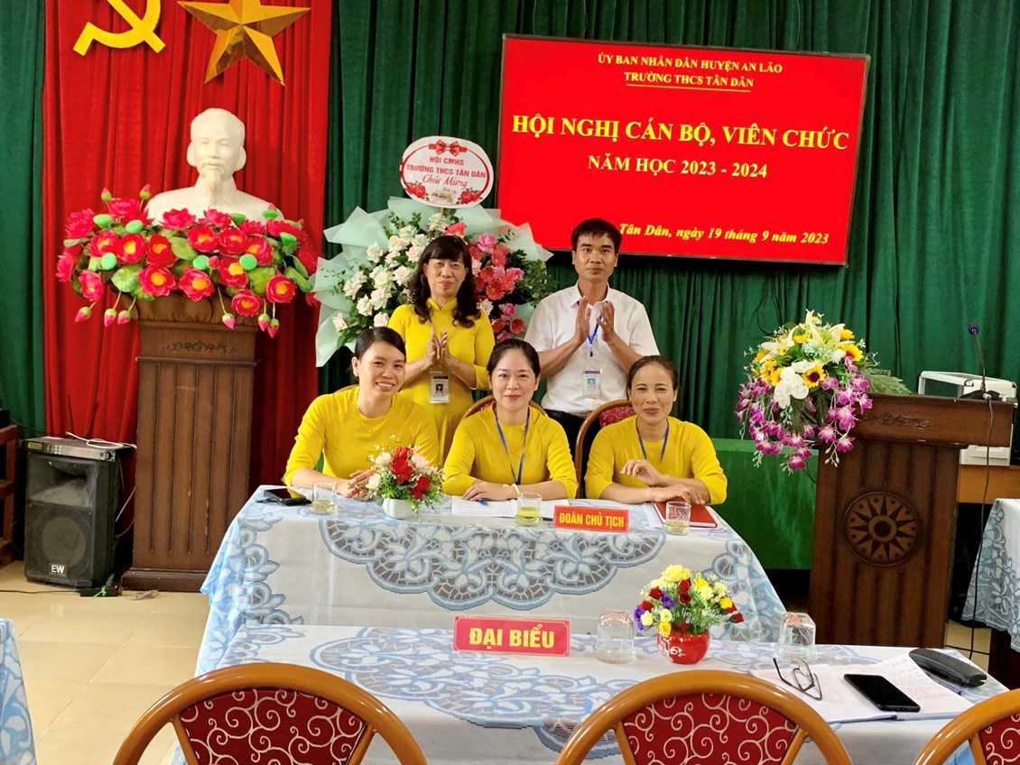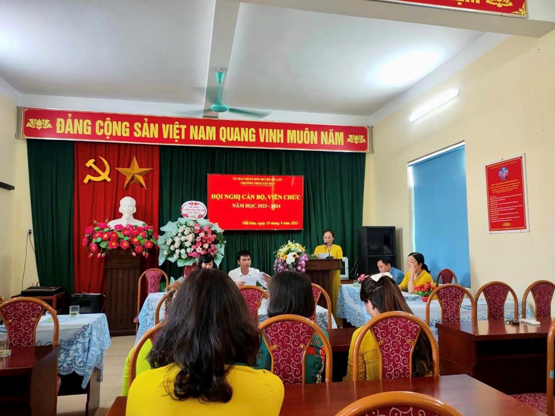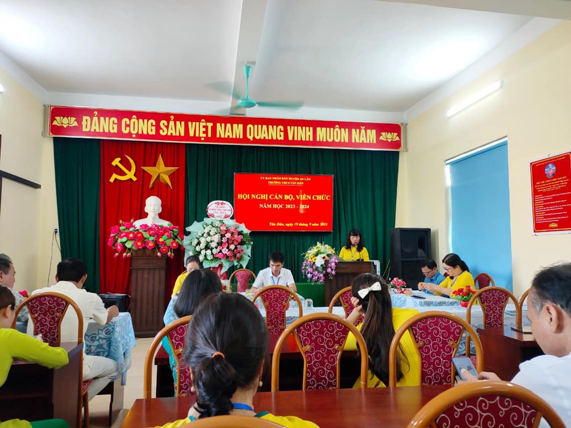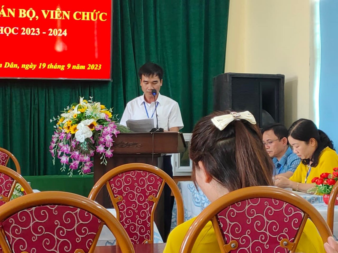 Chiều ngày 19/9/2023, trường THCS Tân Dân đã tổ chức Hội nghị cán bộ Công chức - viên chức, ký giao ước thi đua năm học 2023 -2024 nhằm đẩy mạnh và nâng cao chất lượng các phong trào thi đua, hoàn thành tốt nhiệm vụ năm học. Các tiêu chí thi đua đã được thông qua trong Hội nghị. Sau khi thảo luận, các đại biểu đã nhất trí với các tiêu chí thi đua và quyết tâm hoàn thành thắng lợi nhiệm vụ năm học 2023-2024. Tại Hội nghị, đại diện lãnh đạo nhà trường, đại diện các tổ, đại diện Công Đoàn, Đoàn thanh niên, Đội đã ký giao ước thi đua dưới sự chứng kiến của lãnh đạo Nhà trường.
