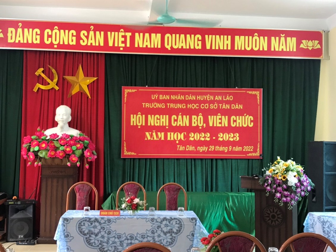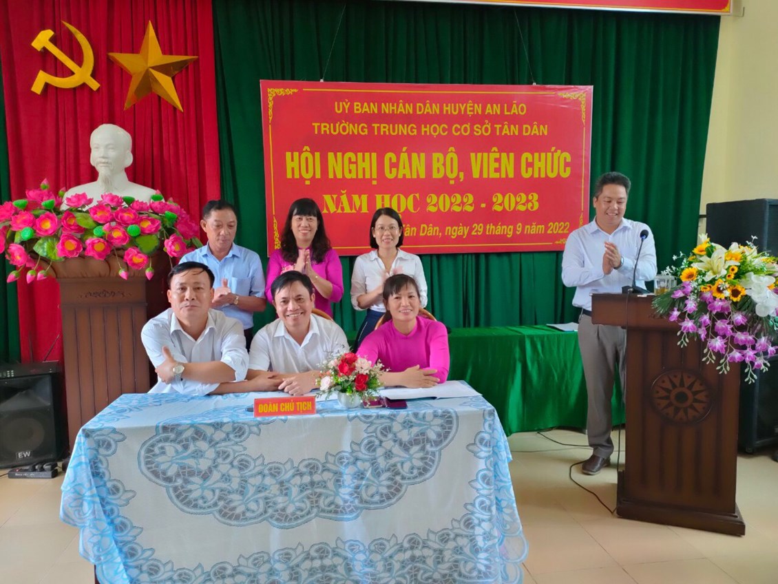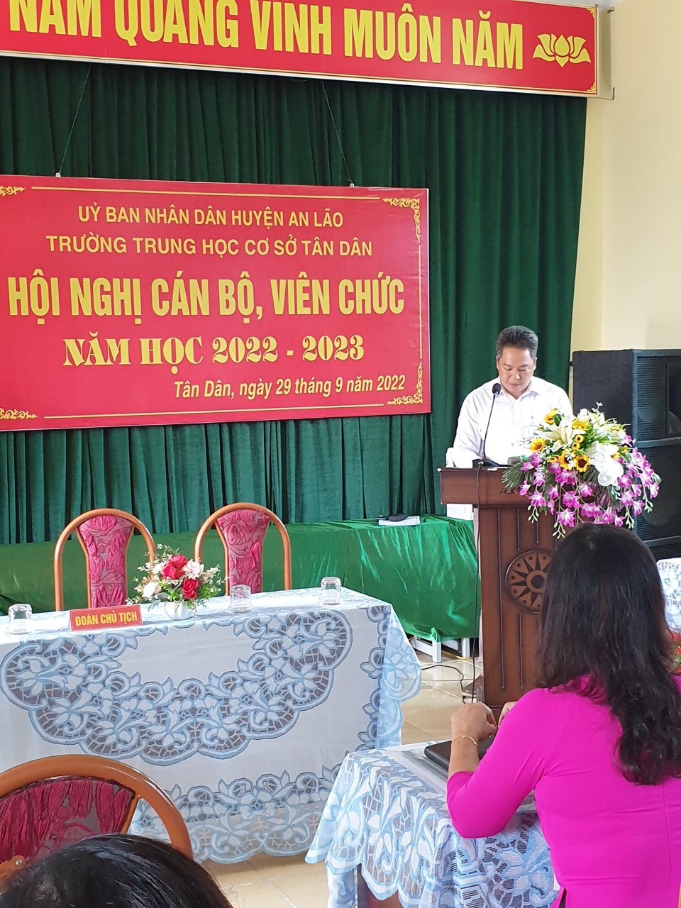Thực hiện sự chỉ đạo của PGD &ĐT, công đoàn huyện, chiều ngày 29/09/2022 BGH và công đoàn trường THCS Tân Dân tổ chức Hội nghị Cán bộ, công chức, viên chức năm 2022-2023.