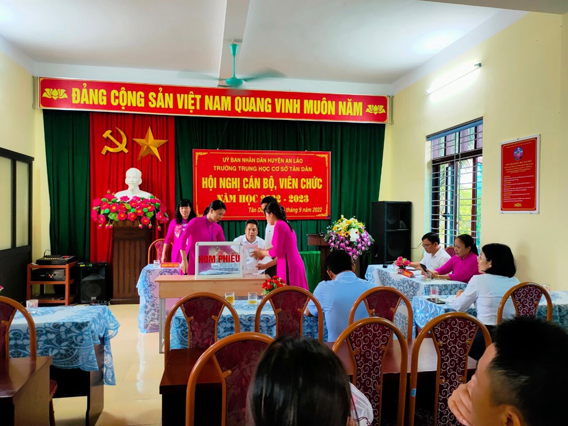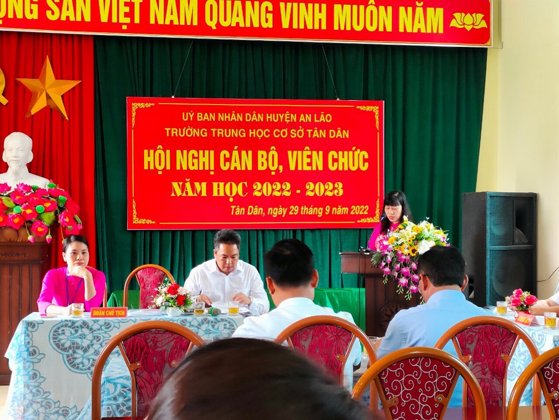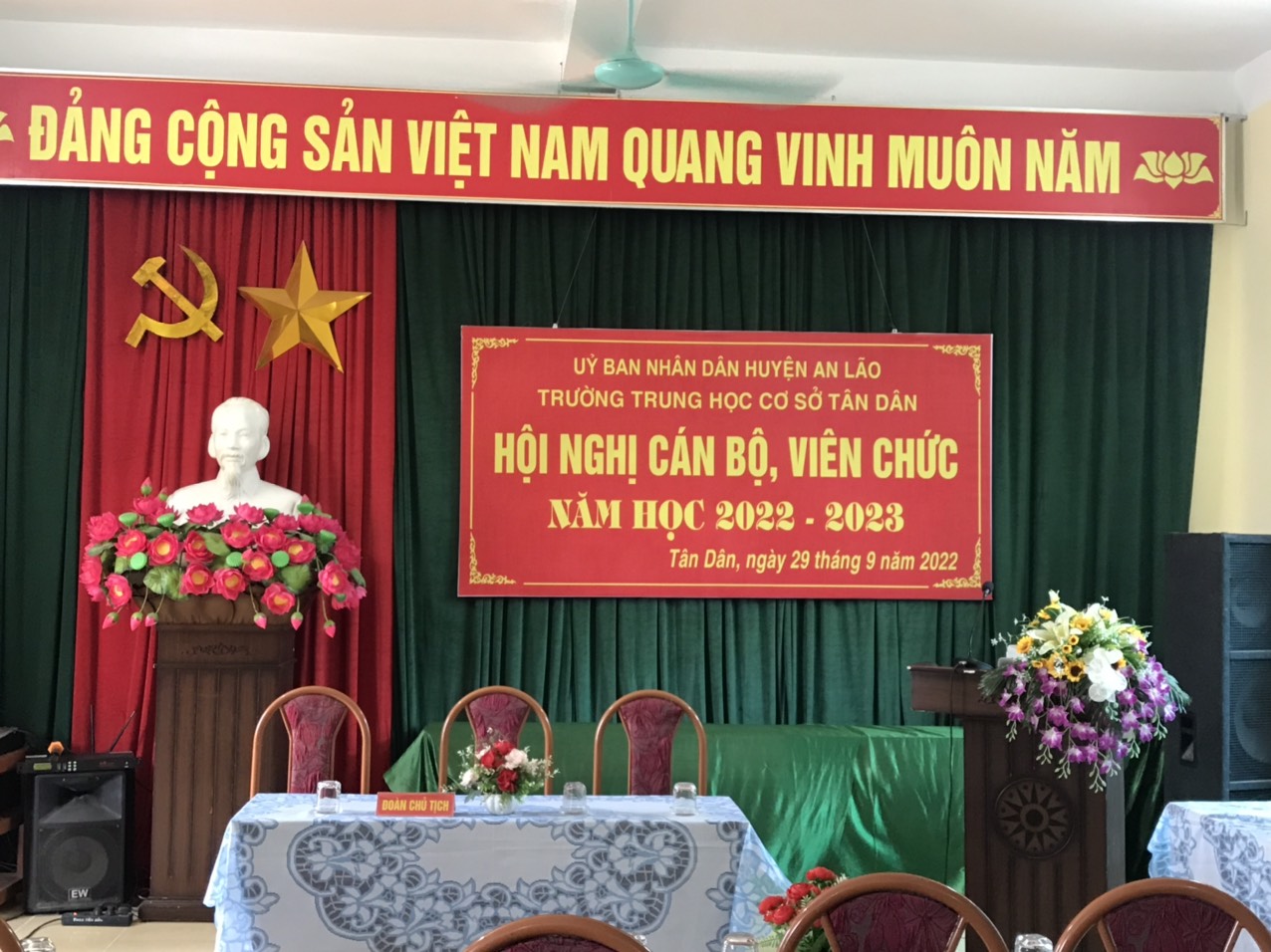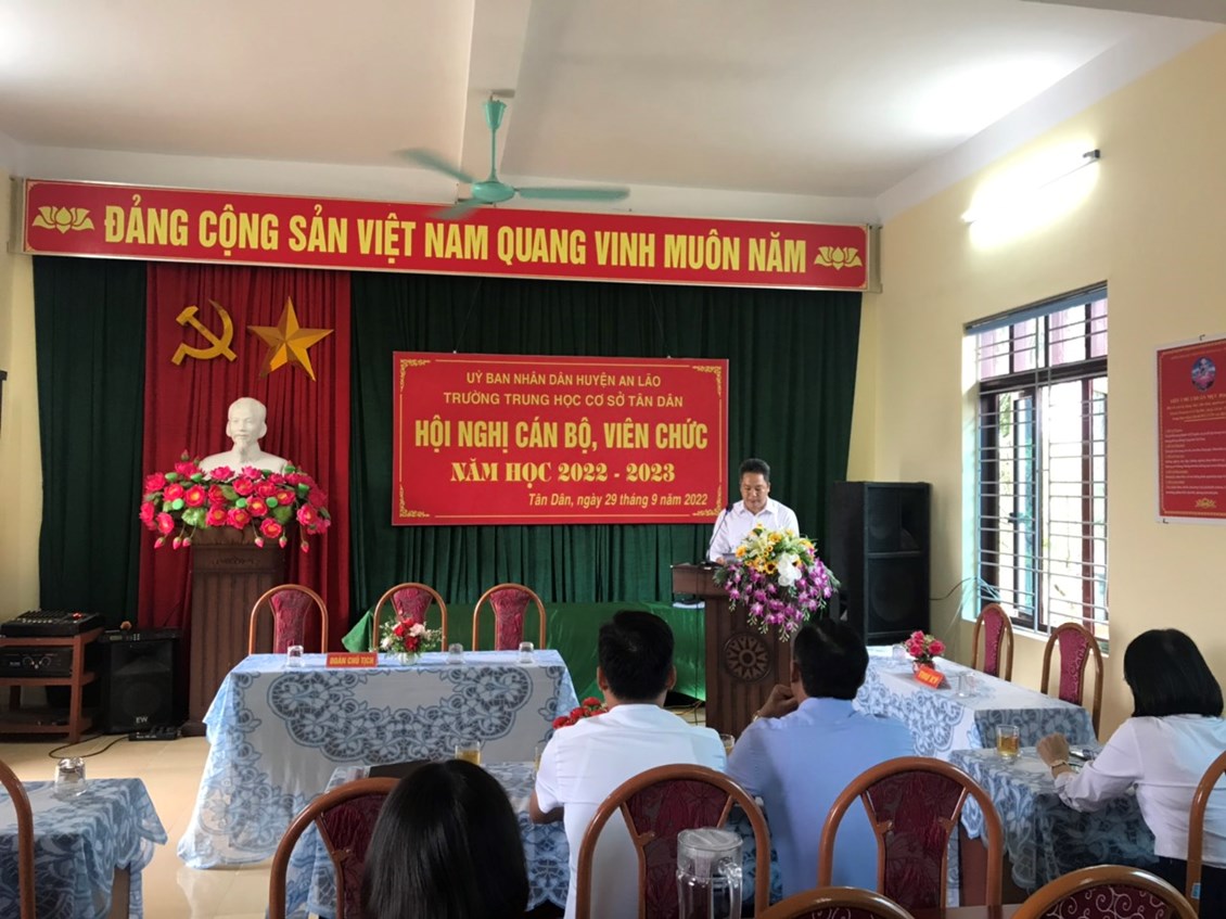 Thực hiện sự chỉ đạo của PGD &ĐT, công đoàn huyện, chiều ngày 29/09/2022 BGH và công đoàn trường THCS Tân Dân tổ chức Hội nghị Cán bộ, công chức, viên chức năm 2022-2023.