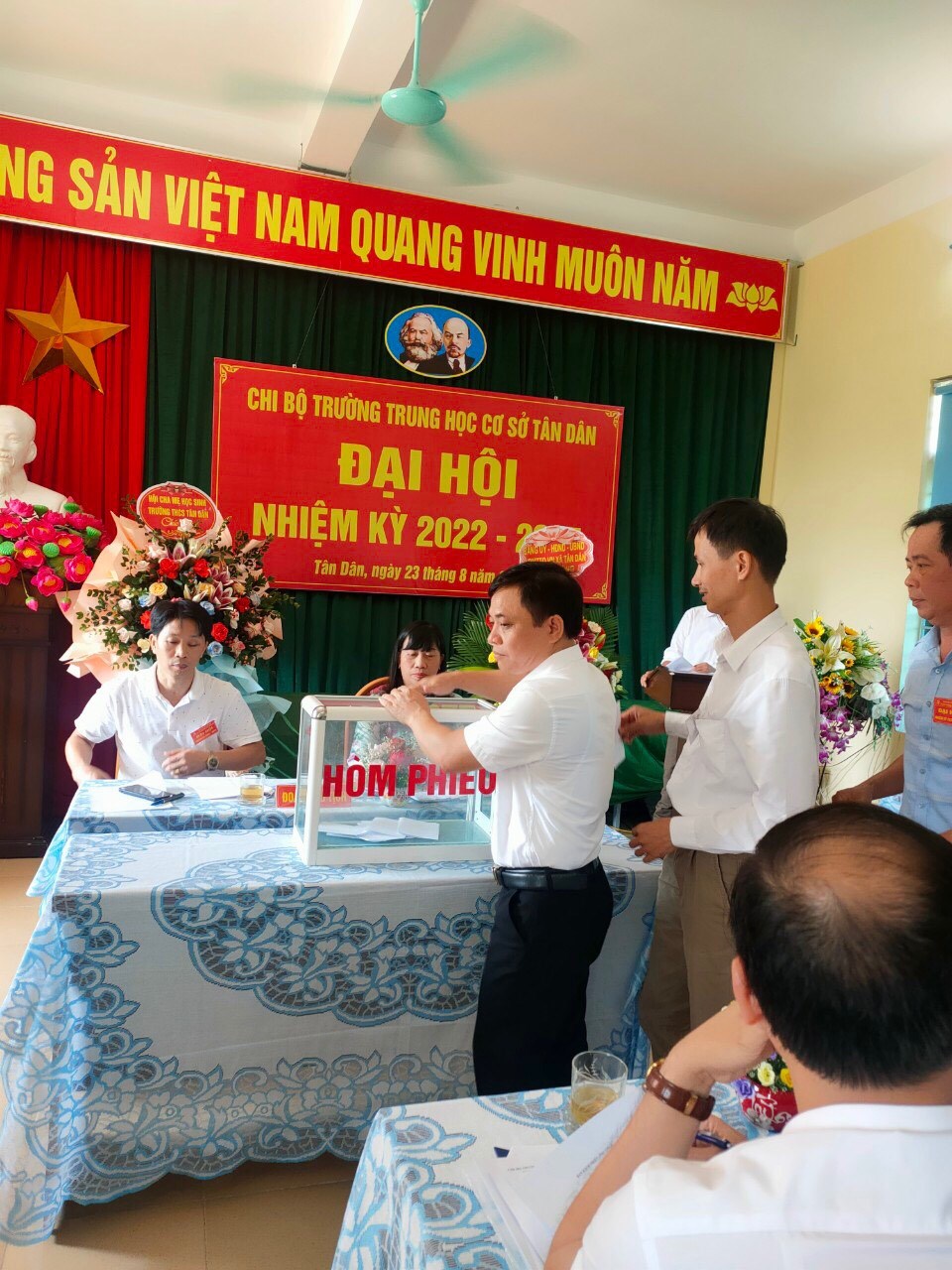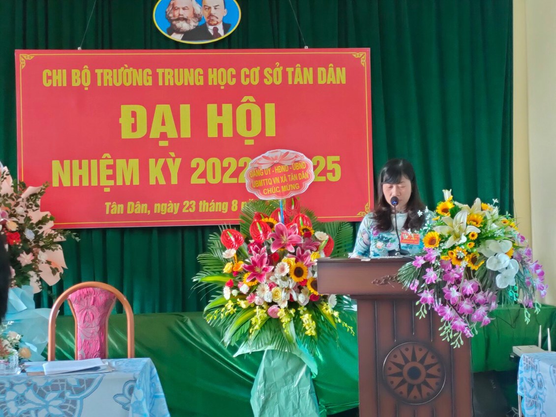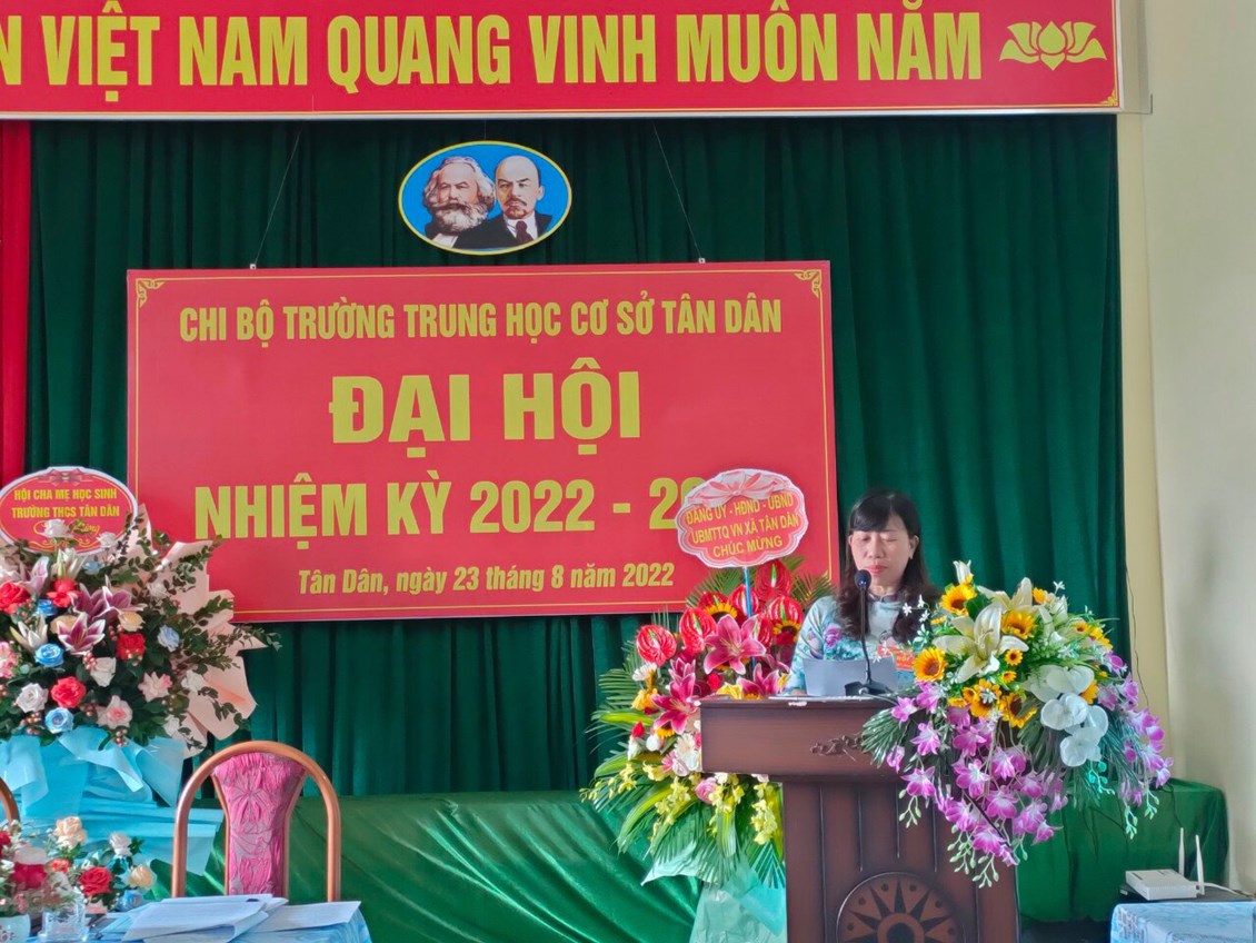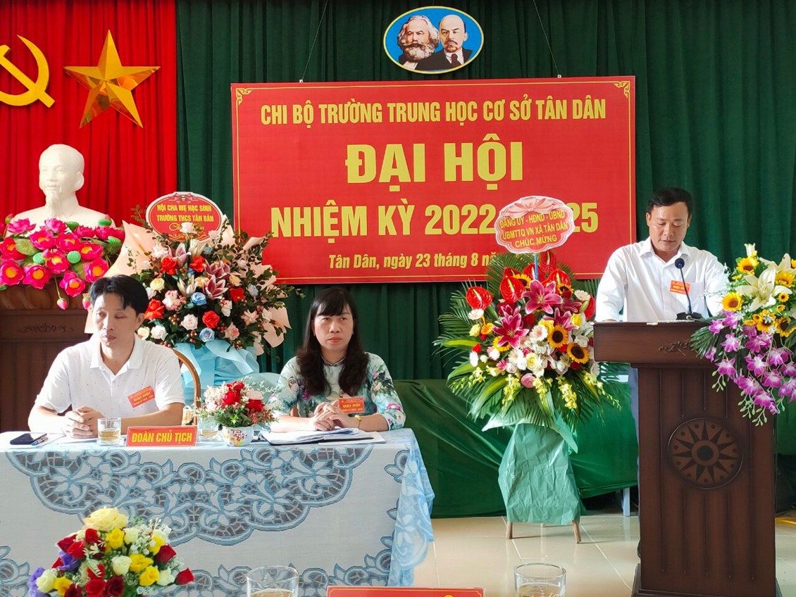 Được sự thống nhất, chỉ đạo của BCH Đảng bộ, sáng ngày 23/08/2022, chi bộ trường THCS Tân Dân đã long trọng tổ chức Đại hội Chi bộ nhiệm kỳ 2022 - 2025, nhằm đánh giá kết quả thực hiện Nghị quyết của Chi bộ trong nhiệm kỳ 2020-2022 và quyết định phương hướng, mục tiêu, nhiệm vụ trong nhiệm kỳ 2022-2025. Bầu Chi ủy, Bí thư, Phó Bí thư chi bộ nhiệm kì 2022-2025