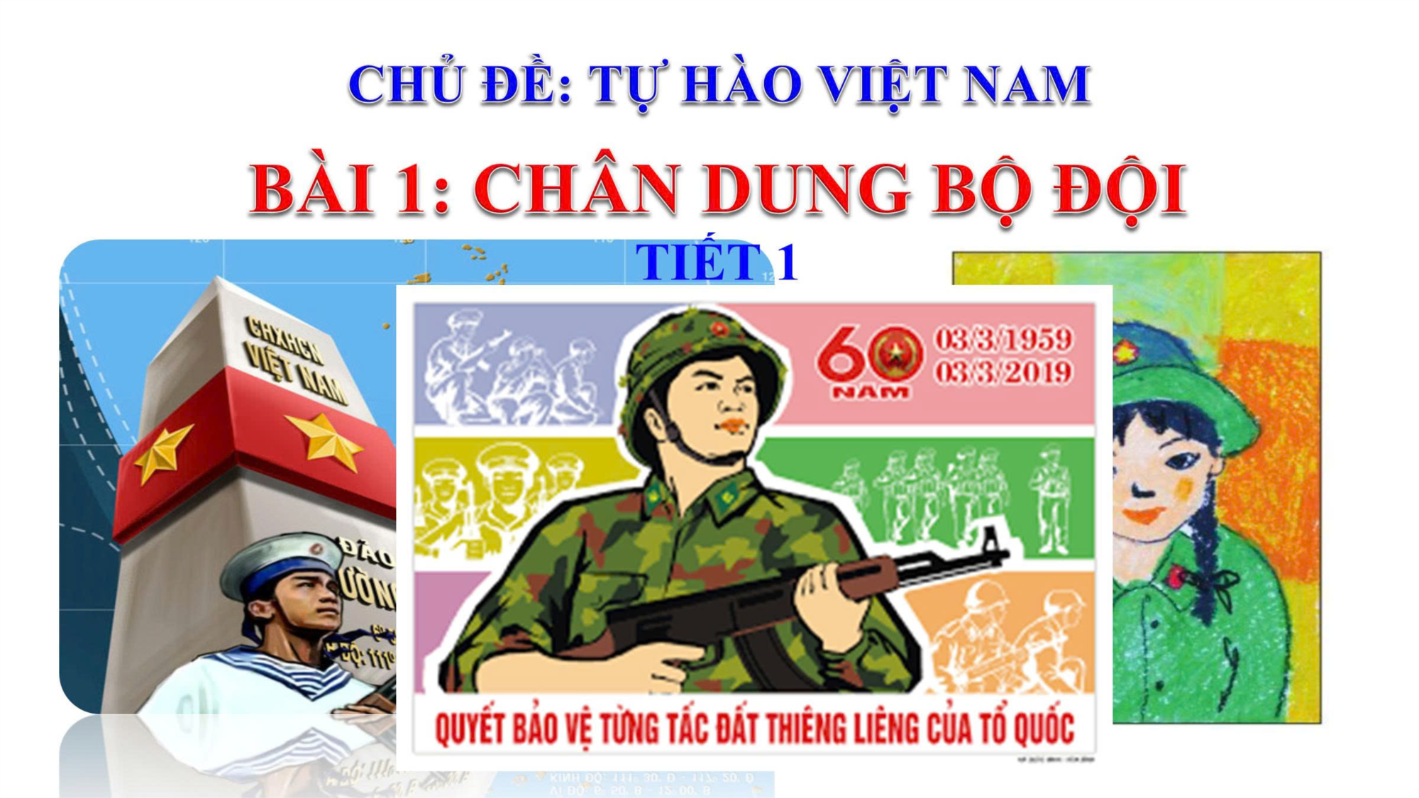 *Quân đội nhân dân Việt Nam hiện nay gồm các quân chủng: quân chủng Lục quân, quân chủng Hải quân và quân chủng Phòng không - Không quân. Các chú (cô) bộ đội đã và đang tham gia nhiều hoạt động chiến đấu, phục vụ nhân dân, sản xuất,….để xây dựng và bảo vệ Tổ quốc. Để thể hiện tình cảm với các cô (chú) bộ đội, bài học này sẽ hướng dẫn các em vẽ chân dung (cô) chú bộ đội. Đồng thời giúp các em hiểu được tỉ lệ các bộ phận trên khuôn mặt người và vai trò của nét được sử dụng trong một số sản phẩm, tác phẩm. Chúng ta cùng vào Bài 1 – Chân dung bộ đội.