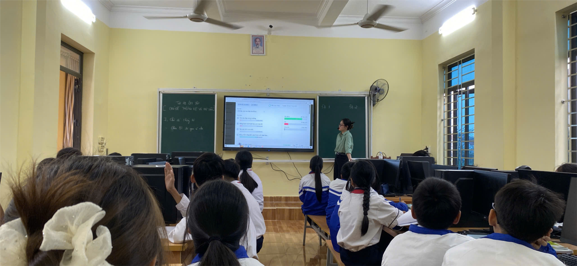 Trong chương trình, cô giáo Lê Thu Hương đã thực hiện tiết dạy thể nghiệm với nội dung ôn tập chủ đề “Thống kê và xác suất”. Tiết học được thiết kế khoa học, sinh động, ứng dụng hiệu quả các công cụ trí tuệ nhân tạo (AI) trong tổ chức hoạt động học tập và kiểm tra, đánh giá. Thông qua các phần mềm hỗ trợ kiểm tra trực tuyến, học sinh được tham gia trả lời câu hỏi ngay trên lớp, nhận phản hồi tức thì về kết quả, từ đó nâng cao hứng thú và hiệu quả học tập.