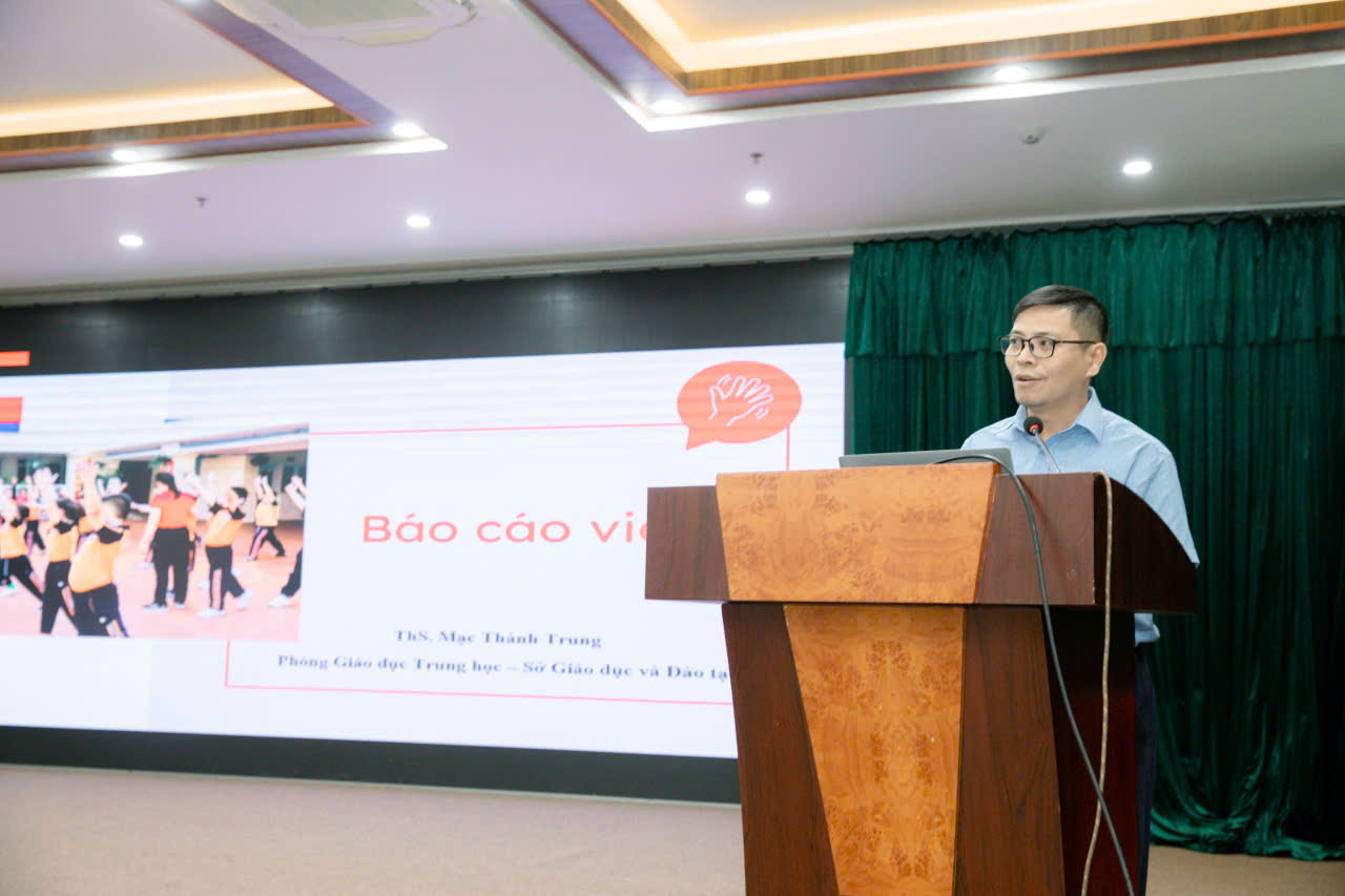 Buổi tập huấn do ông Mạc Thành Trung – Chuyên viên phụ trách GDTC của Sở Giáo dục và Đào tạo Hải Phòng trực tiếp triển khai. Nội dung tập huấn tập trung vào việc hướng dẫn, cập nhật những điểm mới trong chương trình, phương pháp giảng dạy, tổ chức hoạt động trải nghiệm cũng như công tác kiểm tra, đánh giá bộ môn Giáo dục thể chất.