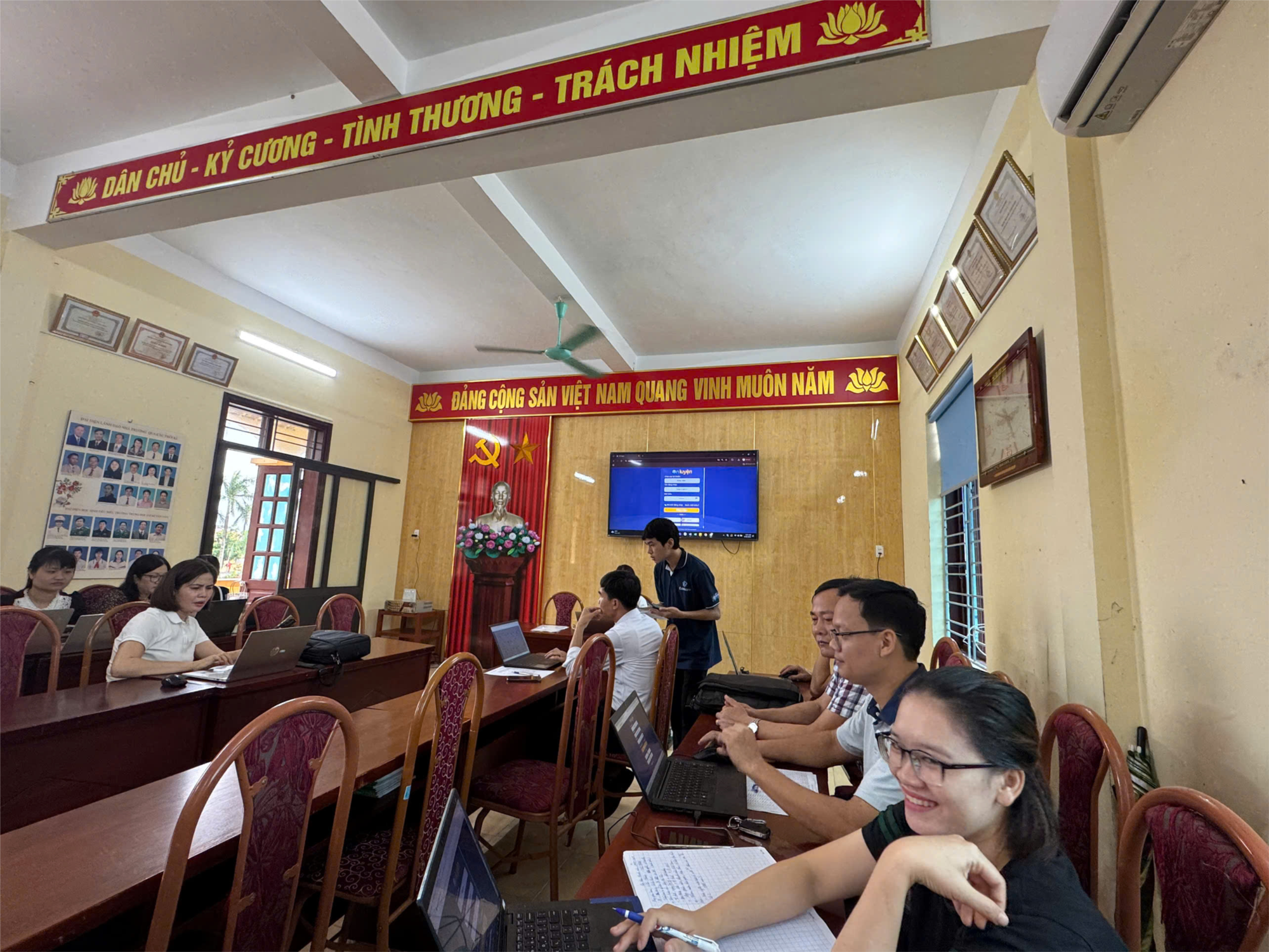 Trong buổi tập huấn, mỗi giáo viên đã thực hành trên máy tính cá nhân, đăng nhập bằng tài khoản riêng để trải nghiệm trực tiếp các công cụ, phần mềm, góp phần nâng cao năng lực ứng dụng công nghệ số trong công tác chuyên môn.