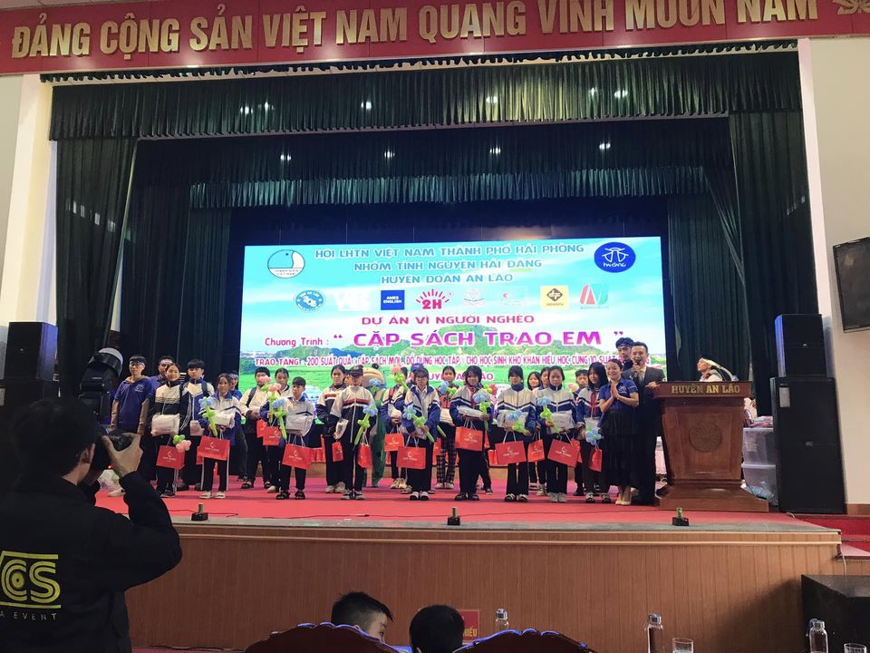 Nhân dịp đầu năm mới 2024 sáng ngày 14/1/2024, Nhóm tình nguyện Hải Đăng đã kết hợp với Ban thường vụ Huyện đoàn An Lão tổ chức thành công Chương trình: “Cặp sách trao em” tại Huyện An Lão. Chương trình đã trao tặng 200 suất quà (Cặp sách mới, đồ dùng học tập) cho 200 học sinh khó khăn hiếu học cùng 10 suất học bổng cho 10 học sinh cấp tiểu học và THCS trong toàn huyện An Lão.