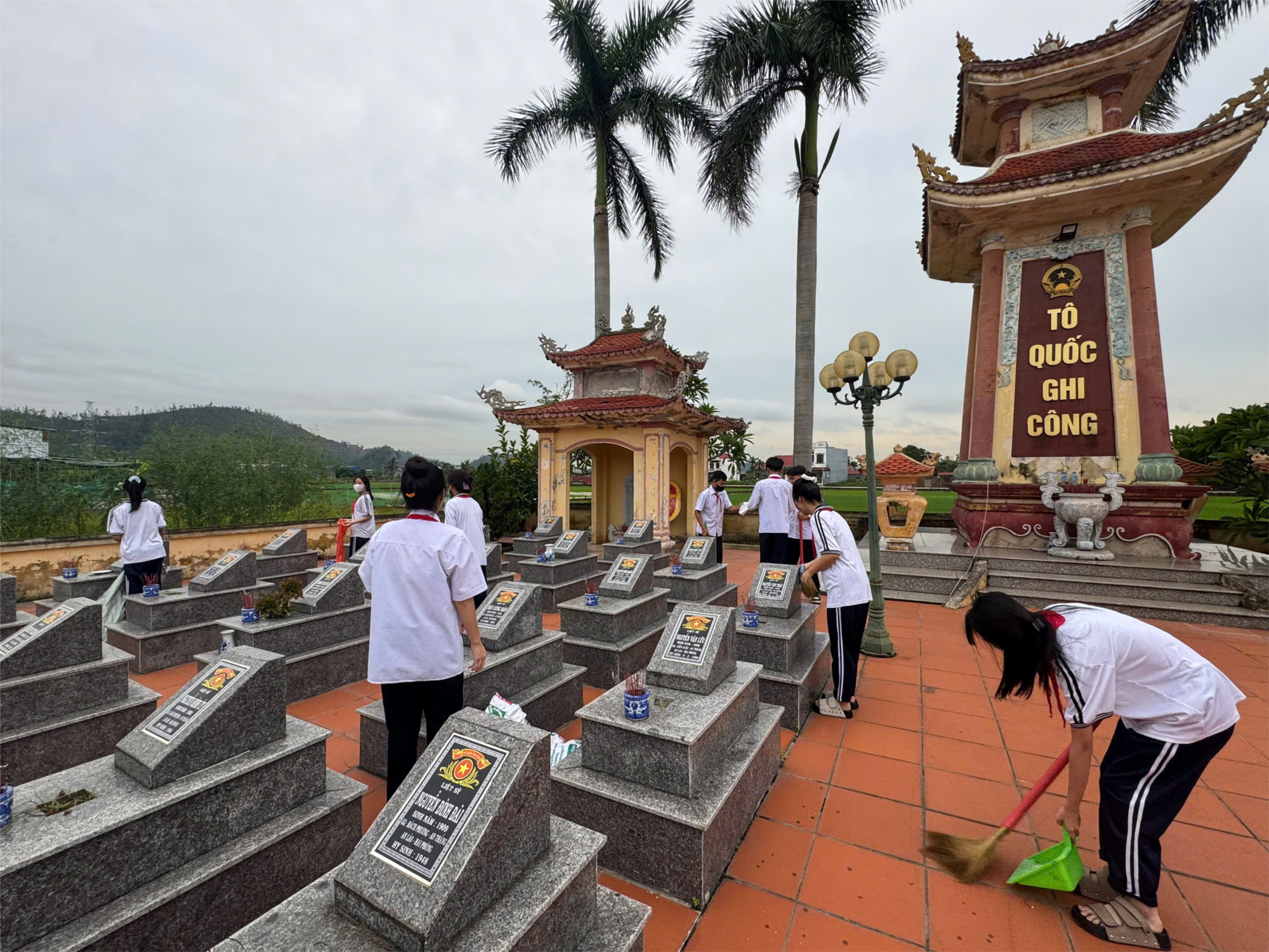 🌿 Với tinh thần “Ngày Thứ Bảy xanh – Ngày Chủ nhật tình nguyện”, các em học sinh đã hăng hái tham gia quét dọn, nhổ cỏ, chăm sóc cảnh quan và dâng hoa tưởng niệm các anh hùng liệt sĩ.