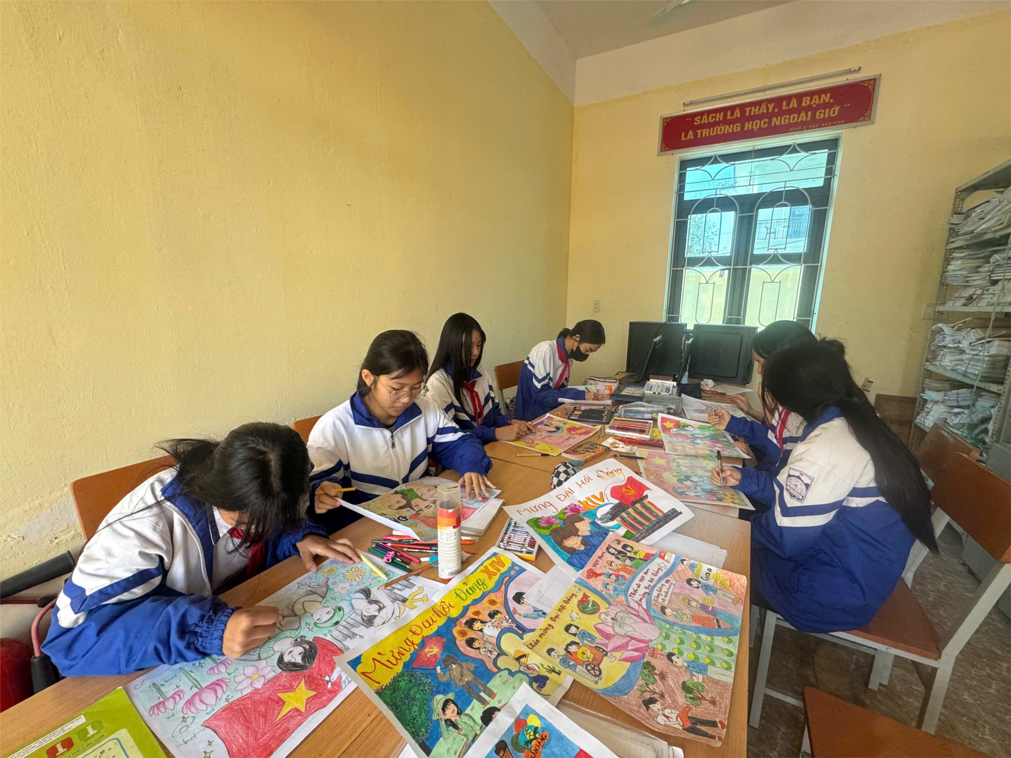 Hoạt động vẽ tranh chào mừng Đại hội Đảng toàn quốc lần thứ XIV không chỉ góp phần tạo không khí thi đua sôi nổi trong nhà trường mà còn là dịp để giáo dục học sinh về truyền thống cách mạng, bồi dưỡng lý tưởng sống, ý thức trách nhiệm và tinh thần cống hiến cho đất nước.