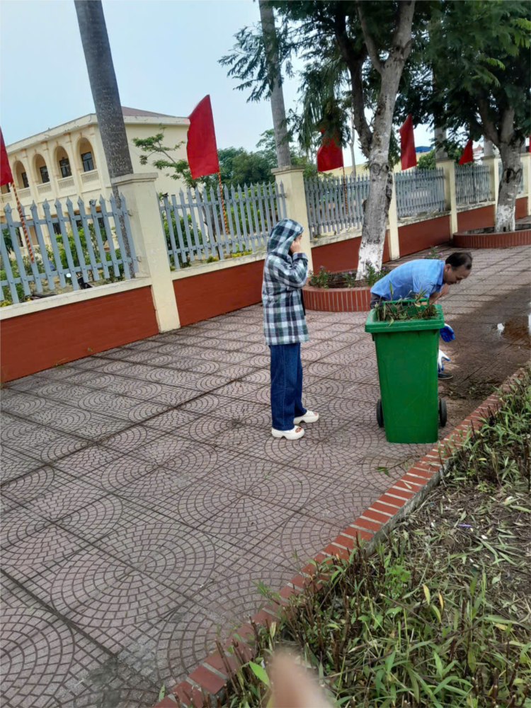 Thầy trò cùng nhau nhổ từng nhành cỏ, vun từng gốc hoa, giọt mồ hôi lăn trên má nhưng nụ cười vẫn luôn rạng rỡ. Không có lời than vãn, chỉ có sự đồng lòng và niềm vui khi được chung tay làm đẹp mái trường thân yêu.