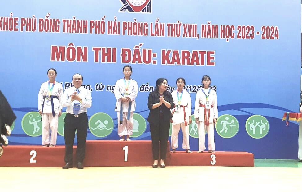 Tiếp nối các ngày thi đấu của Hội khỏe Phù Đổng thành phố Hải Phòng lần thứ XVII năm học 2023-2024. Hôm nay ngày 9/12 tranh tài ở môn thi đấu Karate trường THCS Tân Thắng đã giặt hái được: