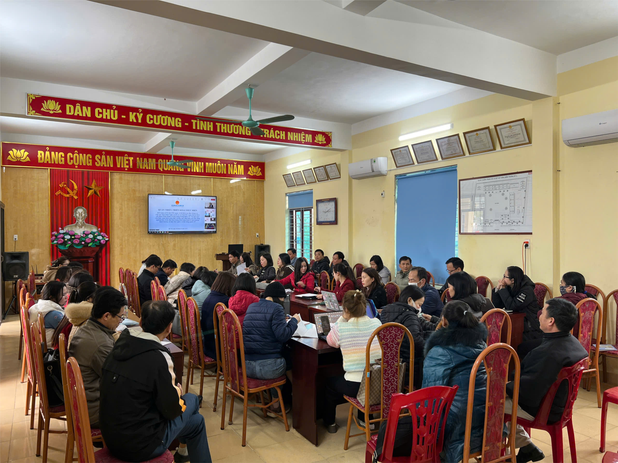 Chiều ngày 6 tháng 2 cán bộ giáo viên công nhân viên trường THCS Tân Thắng dự Hội nghị quán triệt, triên khai thực hiện Kêt luận 91-KL/TW ngày 12/8/2024, Nghị quyềt số 57-NQ/TW ngày 22/12/2024 của Bộ Chính trị và Chiến lược phát triển Giáo dục đến năm 2030, tầm nhìn đến năm 2045.