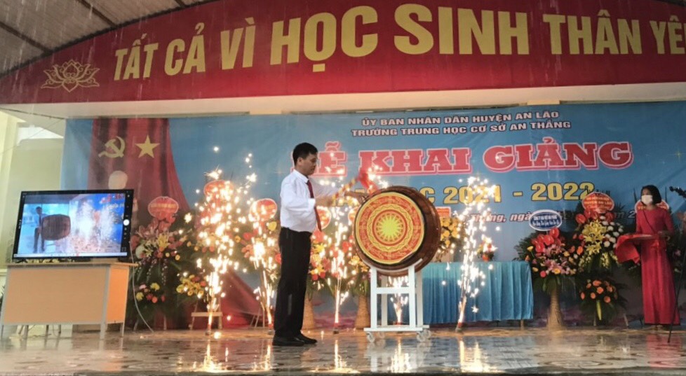 Sáng 5/9/2021 tại trường THCS An Thắng long trọng tổ chức lễ khai giảng năm học mới 2021- 2022. Đây là một lễ khai giảng đặc biệt, được tổ chức trong khi đại dịch Covid-19 với những diễn biến phức tạp, khó lường. Để đảm bảo an toàn trong việc phòng chống dịch như chống giặc, nên, thực hiện sự chỉ đạo của Sở Giáo dục và đào tạo Hải Phòng các trường phổ thông chỉ khai giảng các lớp đầu cấp.