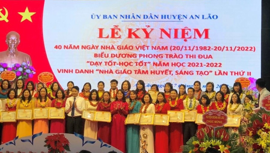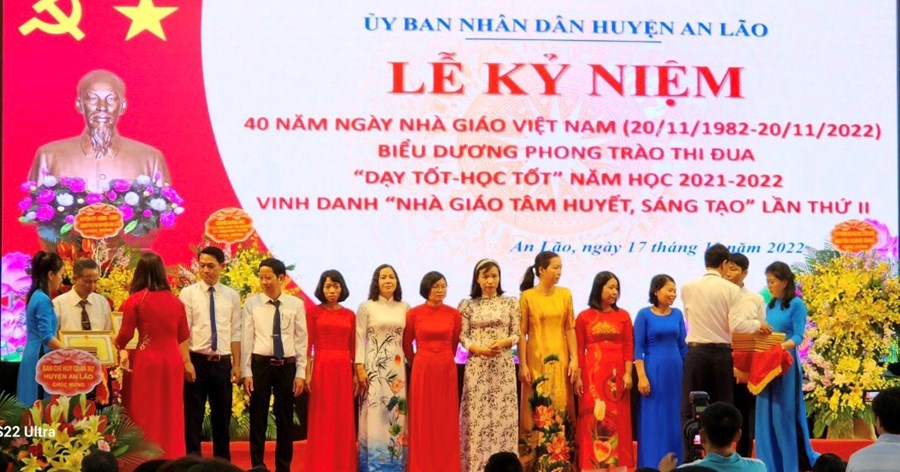 Sáng ngày 17/11/2022, Huyện uỷ, HĐND, UBND Huyện An Lão tổ chức Lễ kỷ niệm 40 năm ngày nhà giáo Việt Nam, biểu dương phong trào thi đua “Dạy tốt - học tốt” năm học 2021–2022, vinh danh nhà giáo tâm huyết sáng tạo lần thứ 2.