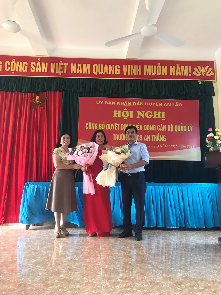 Nhiệt liệt chào mừng đồng chí Trịnh Thị Khuyên đến với trường THCS An Thắng. Chắc chắn An Thắng sẽ luôn là quê hương thứ hai yêu dấu, trường THCS An Thắng là mái nhà, là gia đình; là nơi để đến, để nhớ và để về đối với đồng chí Trịnh Thị Khuyên và đồng chí Đào Xuân Phương.