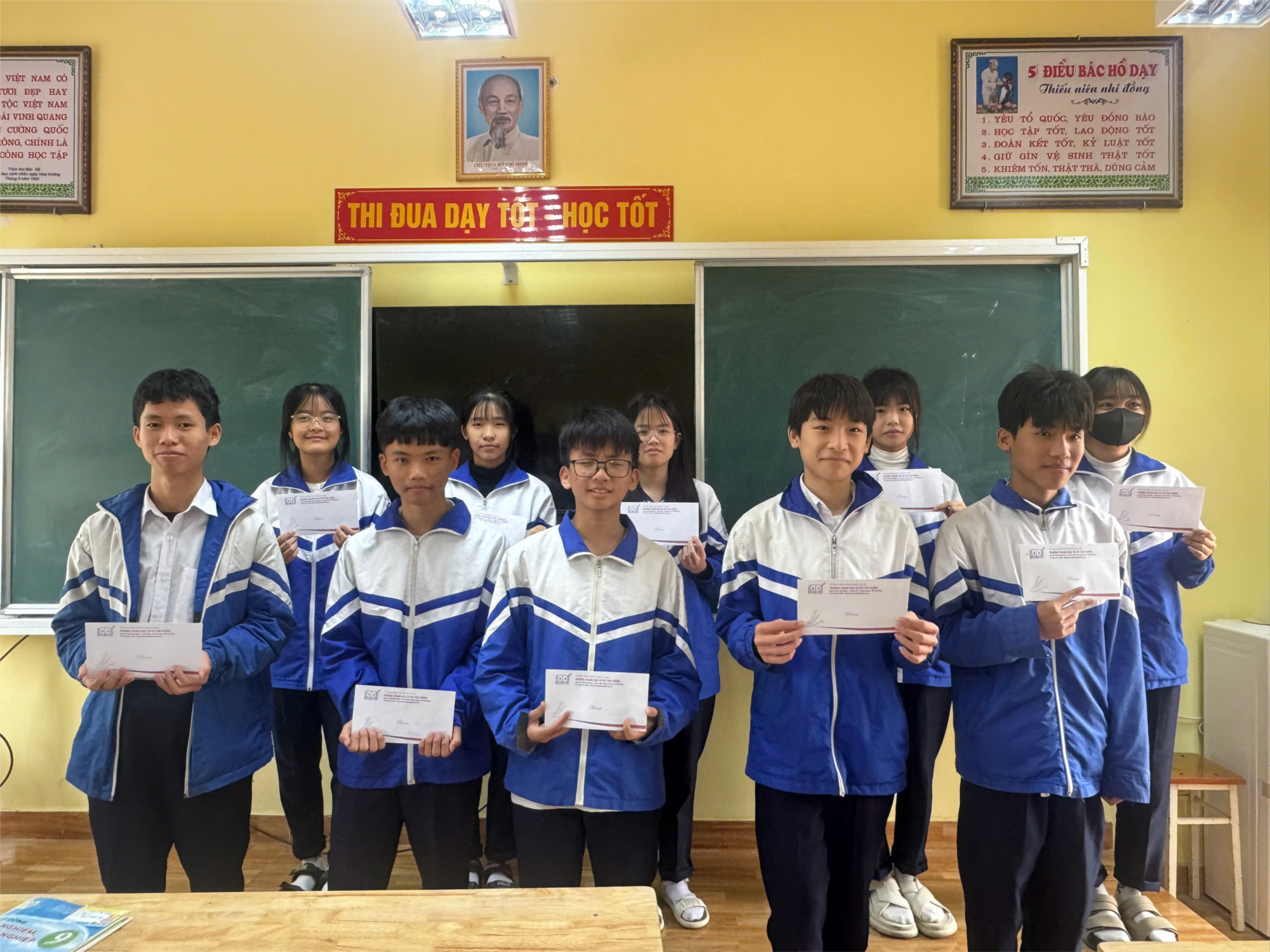 Nhằm kịp thời ghi nhận và động viên tinh thần học tập, rèn luyện của học sinh, nhà trường đã tổ chức trao thưởng, tuyên dương các em học sinh lớp 9B2 đạt thành tích xuất sắc trong học kì I năm học.