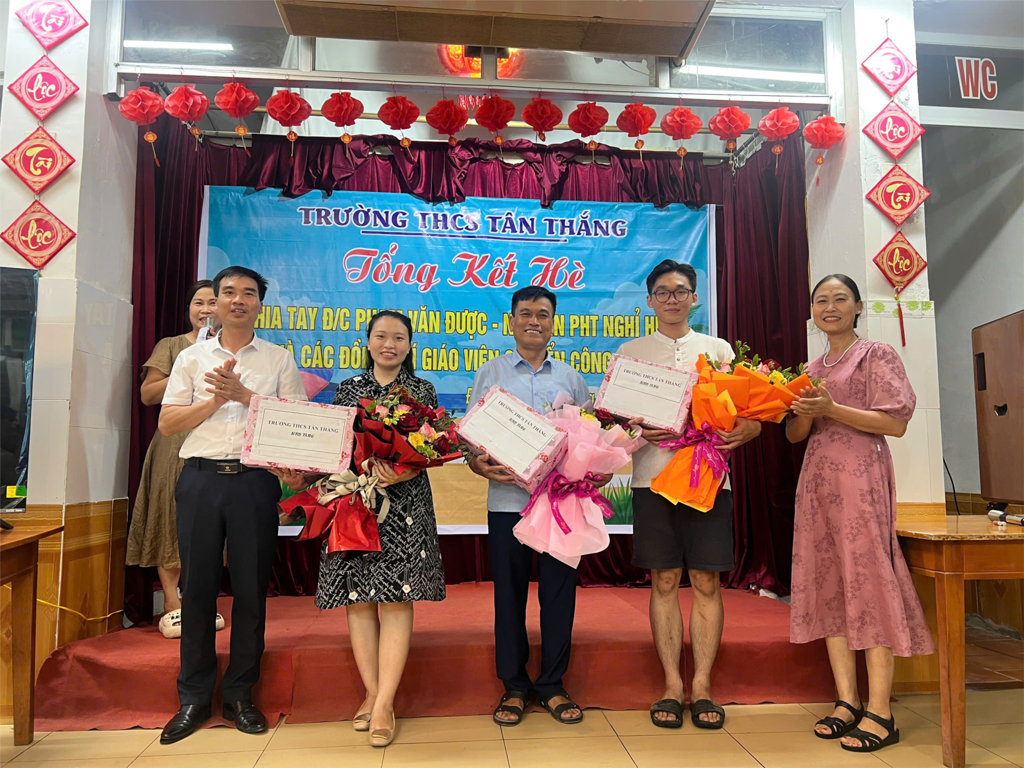 Cũng trong dịp này, nhà trường chia tay thầy Nguyễn Đăng Minh và cô Trần Bích Ngọc – những đồng nghiệp thân thiết đã gắn bó và đóng góp tích cực cho mái trường Tân Thắng trong suốt thời gian qua.